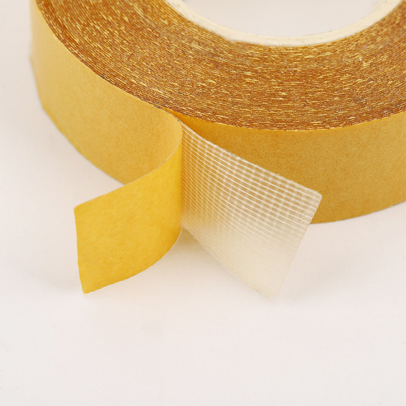 Feature: Glass fiber yarn as the base material, coated with high-viscosity hot melt adhesive on both sides, and compound release paper. Lt has good viscosity, good fixing effect, high tensile strength, moisture-proof, and no glue residue when removed, and meets the requirements of RoHS and REACH regulations.